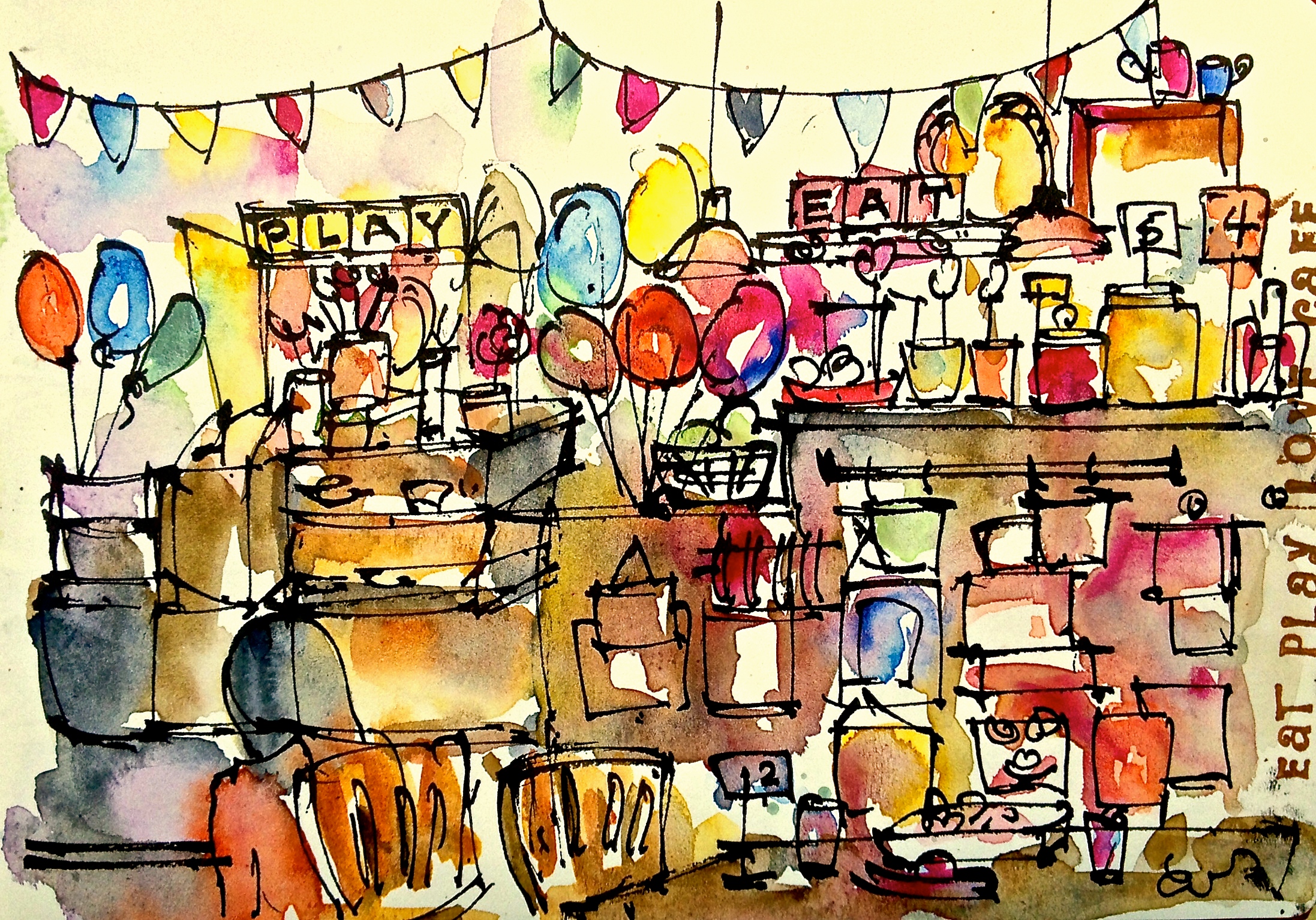 However, if you’re there minus the bambino, well, a slightly uncomfortable feeling akin to showing up for class without books, may tug at your sleeve. Obviously, you cannot share or borrow these metaphorical books! But thankfully the cafe has enough room for you to slink away from the hubbub, grab a table by the window, sip a latte or aromatic tea infusion, read a book, paint and chit chat with your spouse.