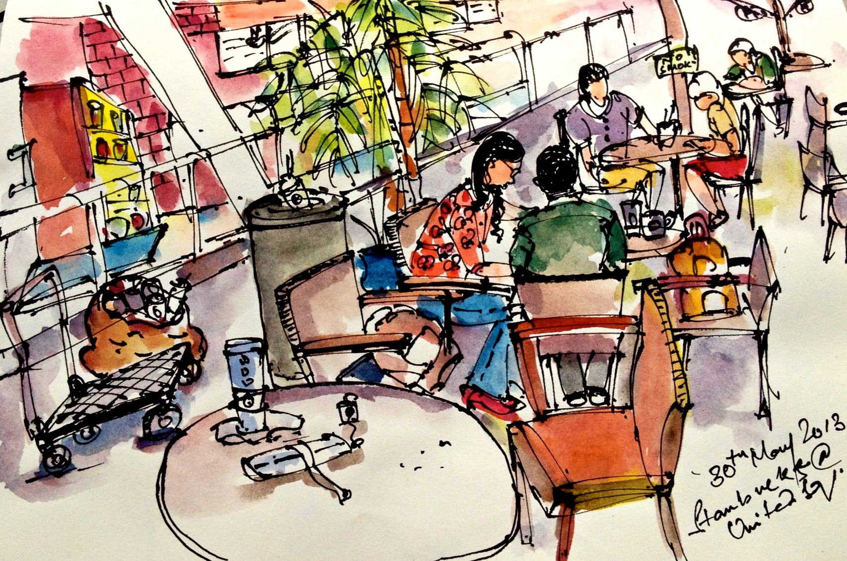 are the ones that keep me occupied for hours. If you’ve read my earlier post –  Had people watching – you must be aware of my penchant for practicing flânerie, especially at cafes and how I channel my people watching / observation skills into making art.