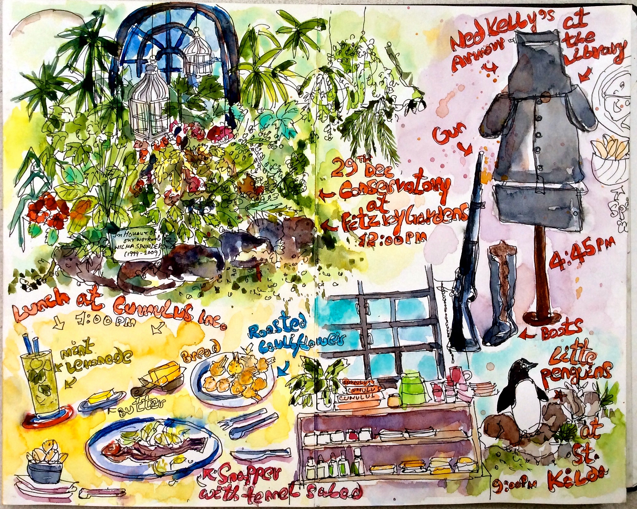 29th Dec / Melbourne: While I was sketched in the conservatory, an old British couple breathed over my neck. They were pretty intrigued by what I was doing and while leaving said. “You’re a clever girl, aren’t you?”. Ahh..ummm..mmm..I’ll be better prepared next time.
