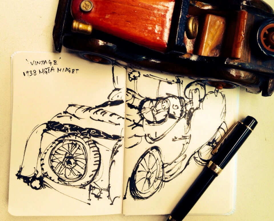 Impression 4 : When I saw this Red Trishaw parked on Armenian Street, I was compelled to sketch it, simply because of this composition. I found a shady spot beside an Ice Kachang lady who initially tried to sell me her ware but later took the responsibility of shooing people away from my line of vision, including tourists. Halfway through the sketch, the red trishaw left, only to be replaced by another in few minutes but this was parked the opposite way. In an attempt to get it done, I was trying to laterally invert the vehicle in my mind and then draw it. When the trishaw driver, quietly lunching beside me got a whiff of my frustration, (I may have been muttering to myself), he got up and to my utter disbelief turned the heavy vehicle around just so I could finish my doodle and declined to take tourists for rides till I finished. When I thanked him, he just nodded. And the Ice Kachang lady dragged her son out of the house to show him my sketch. She seemed proud.