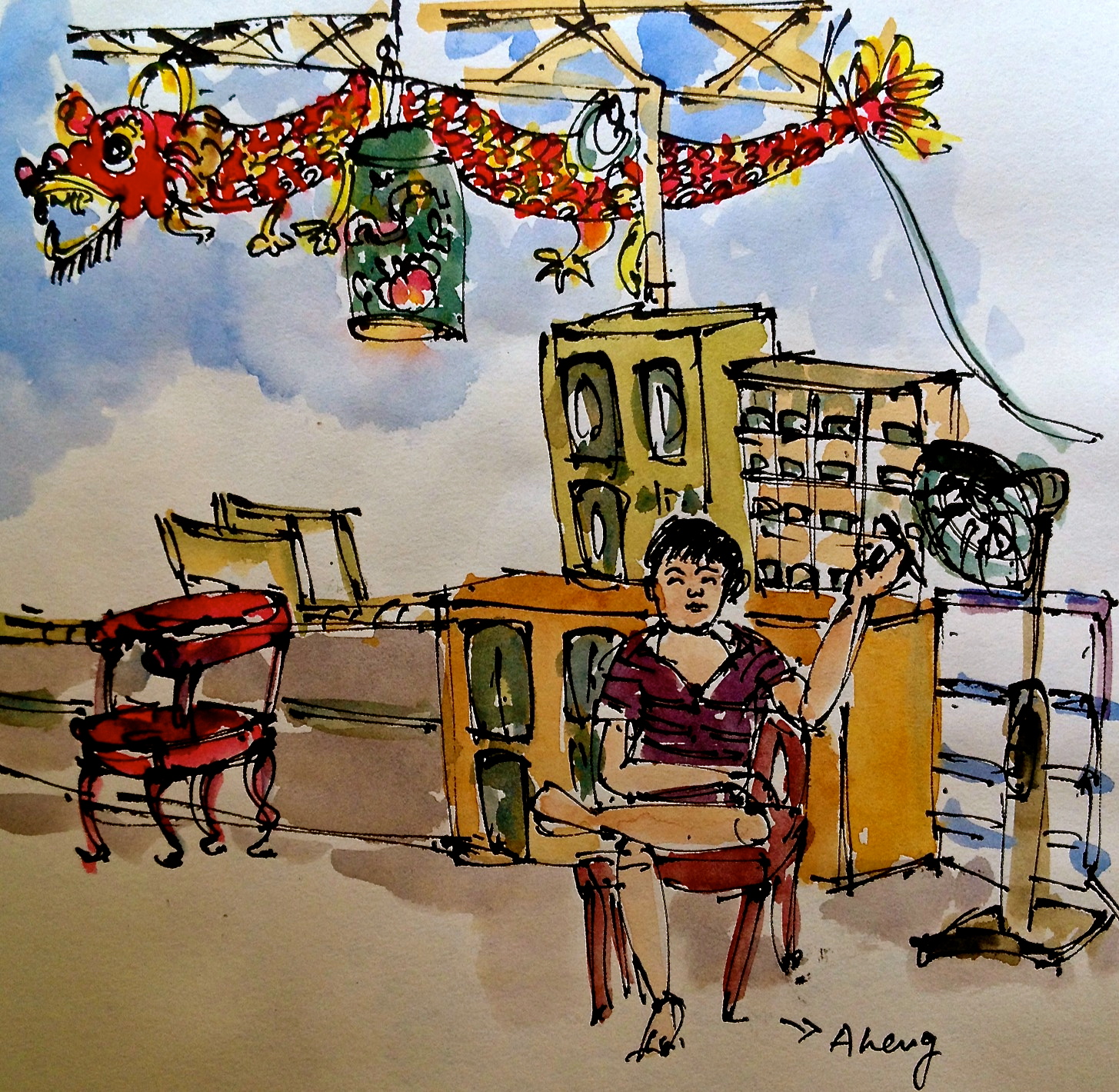 Naturally I had no qualms about asking my cab driver the legend behind Duanwu festival, also known as the Dragon Boat Festival or rice dumpling festival, to which I was headed. The venue was Xuan Jiang Dian, an eighty-plus-year-old Chinese temple atop a hill at 85 A Silat Road, where a group of us were invited to hang out, sketch and watch the making of rice dumplings and eat them, of course. “Why don’t you check the story on the internet?”, asked the cab driver.