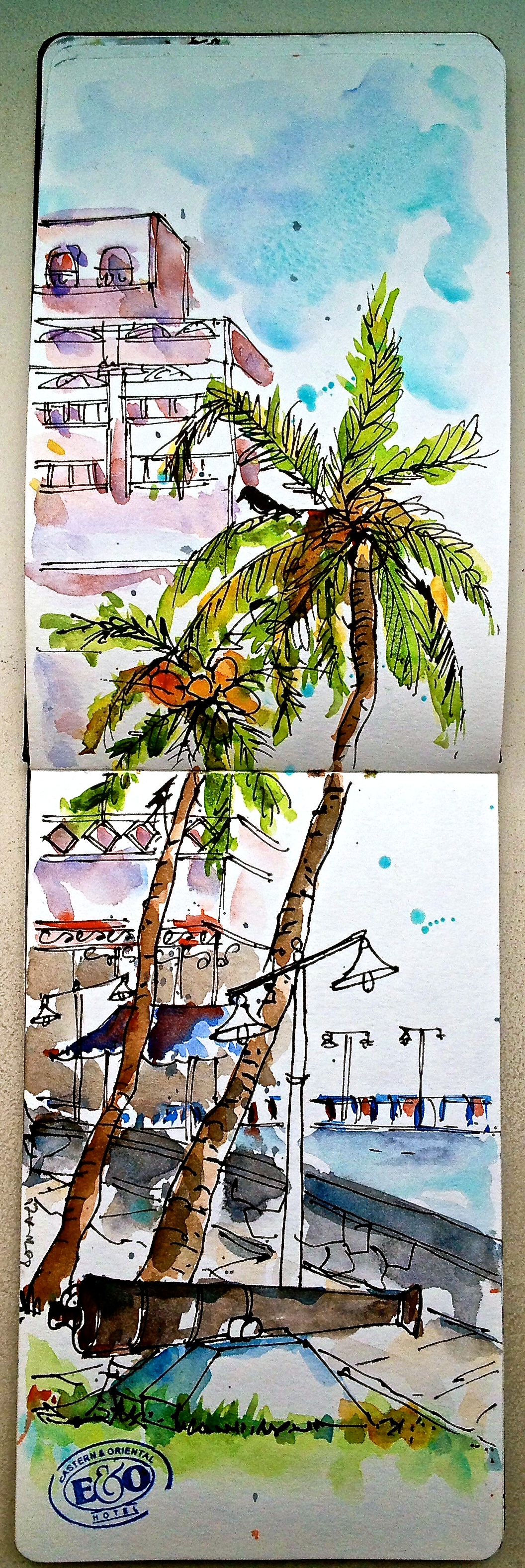 Sketching on the grounds of the colonian Eastern and Oriental Hotel