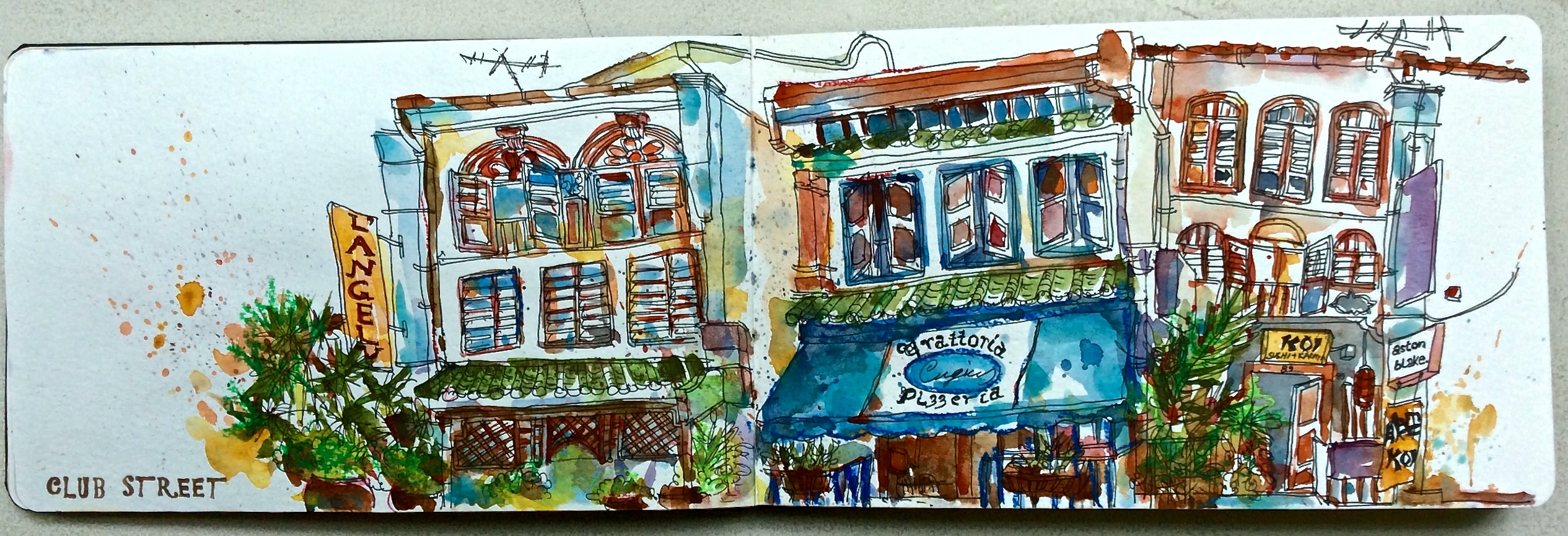 The shophouses have remained but clearly the businesses have changed. Sketched at Club Street